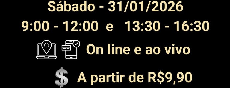 Sábado, dia 31/01/2026 - 9h às 12h e 13h30min às 16h30min (horário de Brasília)